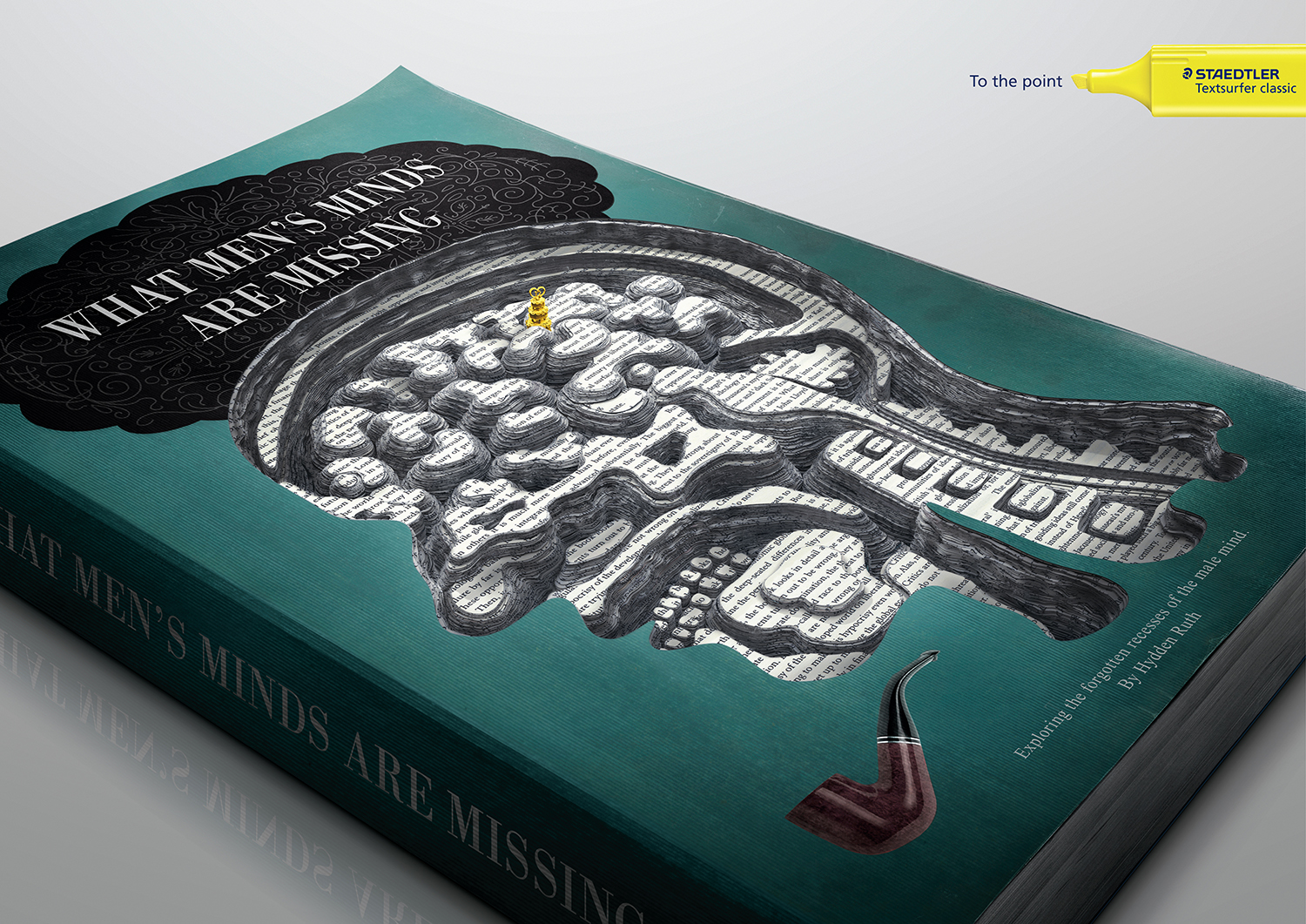 Creative: To dramatize how easy it is to spot what you’re looking for with STAEDTLER highlighters, we showed how we make one little detail stand out from an entire book. We created sculptures carved out, page by page, from actual books. The title of the book suggests the situation you’re in, and the sculpture shows how what you’re looking for is buried within its pages. Even if it’s as difficult as finding water in a desert, STAEDTLER will make that essential piece of information stand out.